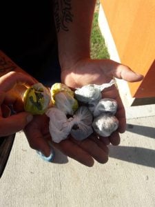 El caso se inició a raíz de un llamado anónimo al 911 de Emergencias el sábado cerca de las 18:30 donde se alertaba de la presencia de un sujeto sospechoso de vender drogas. Al llegar al lugar, la Policía lo identificó cuando estaba rodeado de menores y le encontró 6 envoltorios de nylon blanco con marihuana, papelillos, una pipa y dinero efectivo. En total, casi 100 gramos de marihuana.