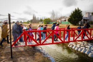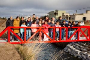 En un encuentro informal y muy alegre al que asistieron el intendente Fernández; el secretario de Gestión y Planificación, Martín Borrazás; el director de Infraestructura, Manuel Silva Muñoz; Tomás y un grupo de amiguitos/as y de vecinos/as, el Puente Los Vecinos, como ellos mismos decidieron que se llame, quedó operativo para su libre uso, luego que a mediados de semana se realizara el armado de las bases, el hormigonado y la posterior colocación de las losetas.