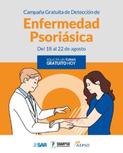 Las especialidades de Reumatología y Dermatología del Hospital Municipal Dr. Pedro T. Orellana, a cargo de las doctoras María Sofía Velloso y Corina Labora, participarán de la Campaña Nacional de Detección de Enfermedad Psoriásica, impulsada por la Sociedad Argentina de Reumatología y la Sociedad Argentina de Psoriasis.