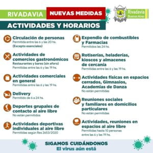 “La Provincia anunció que Rivadavia sigue en Fase 3 pero es muy probable que el próximo martes 25 de mayo tengamos que pasar a Fase 2 y ahí es donde apelo al compromiso de todos y es por eso que hemos decidido un conjunto de medidas para cumplir y llegar al martes que viene con el esfuerzo de todos y evitar que Rivadavia pase a Fase 2. Pero no solamente por lo que implica una fase sino que lo que implica Fase 2 son imágenes muy fuertes en nuestro Hospital con un gran número de pacientes, tiene que ver con que las restricciones laborales en esa fase son mayores y va a afectar básicamente la economía de cada una de las familias y sobre todo la fase 2 tiene que ver con la suspensión de clases presenciales”, manifestó Reynoso en conferencia de prensa brindada vía redes sociales.