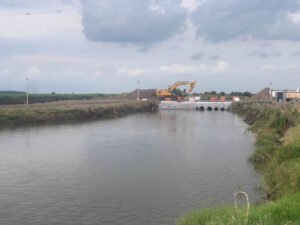 Al mismo tiempo, con mano de obra de empleados del Municipio de Trenque Lauquen, se estará concretando una pared que soportará el agua que llegue desde el bypass con una estructura de unas 1000 bolsas de suelo cemento que se completaron con el trabajo de obreros trenquelauquenses y de Vialidad Nacional.