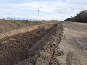 Unos 40 trabajadores recibieron telegrama de suspensión de sus tareas y la traza quedó con montículos de tierra sin acomodar y zanjas sin señalizar a los costados tras la decisión de la empresa contratista de la Ruta del Cereal de detener la obra para pedir una redeterminación de los precios acordados con el gobierno de la provincia de Buenos Aires.