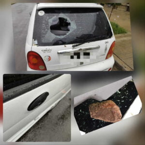 Las escenas describían a una mujer intentando ingresar al auto por la puerta del conductor y roturas en la manija de la puerta izquierda y la rotura del vidrio de la luneta trasera con un elemento contundente.