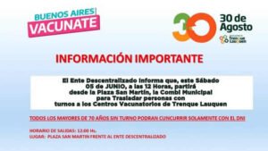 El Ente Descentralizado de 30 de agosto dispuso de un transporte para acercar a los vecinos con turnos para los vacunatorios de Trenque Lauquen durante la jornada de mañana sábado.