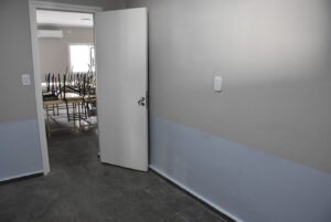 También se está realizando el recambio de artefactos de iluminación y la instalación eléctrica y la colocación del equipo de aire frío/calor en el aula 4, además de poner a punto la calefacción central para el resto del edificio. En tanto que las aberturas serán revisadas y ajustadas por el personal de la fábrica de Aluminio Municipal.
