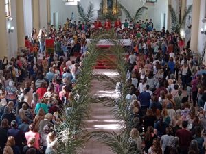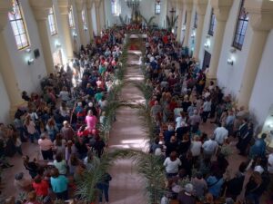 En la misa, el cura párroco invitó a vivir la Semana Santa con “conmoción” en cada uno de sus días, iniciando este domingo y continuando con celebraciones especiales jueves, viernes, sábado y el próximo domingo de Pascuas de Resurección.