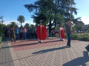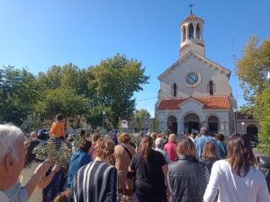 Luego, con la cruz como estandarte, los feligreses se trasladaron al templo parroquial a pie, con una gran cantidad de niños y niñas a la cabeza de la peregrinación.