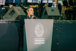 Luego, Isabel Araujo, de la Comunidad Mapuche Cacique Pincén, dijo que “es una alegría enorme poder estar hoy en Trenque Lauquen y poder volver a donde nací, donde mi proceso de construcción y reconstrucción de mi identidad, lo he caminado durante tantos años”.