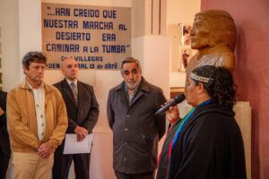 Seguidamente, la misma comitiva encabezada por el Intendente Fernández, a la que se sumó Isabel Araujo, de la comunidad Mapuche Tehuelche Cacique Pincén, colocaron una ofrenda floral en el busto al Cacique Pincén, en el Museo de la Comandancia. La Lonko, además, pronunció allí unas palabras.