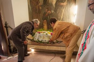 El presidente del HCD y el padre Juan Pellegrino, junto al Jefe comunal, fueron los encargados del homenaje. En este marco, el sacerdote impartió una bendición.