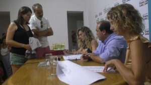 Posteriormente se procedió a la firma protocolar de tres escrituras correspondientes a las familias de Luciana Casola-Alejandro Ezequiel Álvarez; Yesica Paola Pereiro; Román Bragagnolo-Jesica Vanina Silvestre, para luego entregar un obsequio a la Escribana y seguir con el resto de los beneficiarios/as.