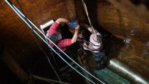 En la madrugada de hoy viernes, personal municipal de la Dirección de Servicios Sanitarios, a cargo de Gustavo Achaerandio, trabajó intensamente en la reparación de dos de las tres bombas sumergibles ubicadas en la cisterna que inyecta y eleva agua hacia la Copa, además de dos caños que también presentaban roturas.