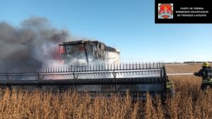 Los bomberos voluntarios de Trenque Lauquen sofocaron un incendio en una cosechadora que estaba en pleno trabajo en la zona rural del distrito.