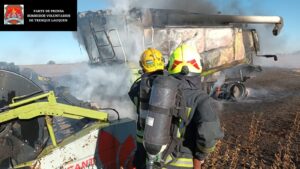 “Faltando varios kilómetros para llegar se logra visualizar una columna de humo que indicaba un incendio de magnitud. Se solicita a la central que envíe unidad cisterna. Al arribo de la dotación se observa incendio generalizado de cosechadora con propagación hacia el rastrojo donde estaba posicionada”, informaron desde el cuartel central.