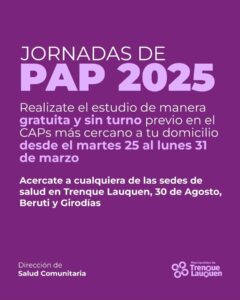 Asimismo, informó que “la toma de muestras se hace de manera gratuita en los distintos efectores de salud del distrito a todas las personas con útero, tengan o no obra social, sin turno previo y por orden de llegada”.