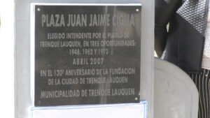 A continuación, el Intendente municipal; el presidente del PJ y Agustina Martino procedieron a descubrir una placa en homenaje al ex Intendente. La placa dice lo siguiente: “Homenaje por el 112º Aniversario del Natalicio del Intendente Juan Jaime Ciglia. 17 de octubre de 2022. Intendente municipal. Dr. Miguel Ángel Fernández. Municipalidad de Trenque Lauquen”
