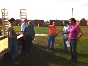 Acompañado por el secretario de Gestión y Planificación, Martín Borrazás, y el subsecretario de Planeamiento y Obras Públicas, Cristian Rabasa, el Jefe comunal se reunió en el sector donde se emplazan las viviendas con el titular de AMOC, Néstor Rodríguez, e integrantes del equipo técnico de la mutual, entre ellos el arquitecto José Carabelli.
