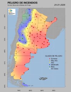 Solamente en una parte del sur bonaerense está bajo la categoría “riesgo muy alto”, pero el resto tiene alerta máxima para las próximas 48 horas. En este sentido, las autoridades vienen advirtiendo que la situación debería considerarse “potencialmente explosiva o extremadamente crítica”.