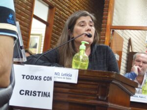 La primera oradora fue la presidenta del bloque Frente de Todos, Leticia Badino, quien destacó: “Estamos permitiendo con discursos, también con silencios, la inestabilidad de nuestro sistema democrático. Desde hace tiempo se violenta la figura de Cristina Fernández, el problema sí es Cristina, porque es una líder que representa los intereses del campo nacional y popular, porque fue una presidenta que no tuvo ningún temor y se puso al hombro luchas históricas de nuestro país”.