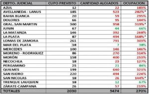 Tiene un 67% de ocupación total. Hay otros puntos que superan el 300%. Es un relevamiento de la prestigiosa Red de Jueces Penales de la Provincia de Buenos Aires