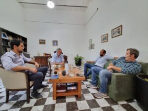 El dirigente peronista que participa del armado distrital del PRO, Germán Tanoni, y el vicepresidente de la Cámara de Comercio de Trenque Lauquen, Ignacio Concepción, se reunieron con el pre candidato a gobernador de la Provincia de Buenos Aires y referente provincial del equipo de Patricia Bullrich, Joaquín De la Torre.