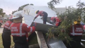 El Ente Descentralizado de 30 de Agosto en conjunto con agentes del Cuerpo de Bomberos Voluntarios y de la Cooperativa de Electricidad se encuentra trabajando en un operativo de emergencia tras el temporal con una fuerte tormenta que pasó esta madrugada (sábado) por la ciudad con lluvias y ráfagas de viento que causaron daños materiales en distintos puntos, caída de plantas, corte de energía eléctrica y la voladura de una gran parte del techo de la Escuela Primaria n° 17 “José Manuel Estrada”.