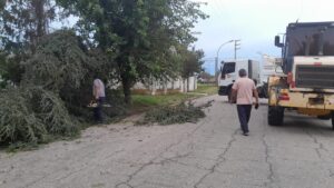 Mientras tanto, el personal del Ente Descentralizado de 30 de Agosto recorre la localidad para reestablecer el orden y la limpieza en un operativo de emergencia que incluye agentes del área de Vial y de Higiene Urbana, con motosierras, camiones y palas.