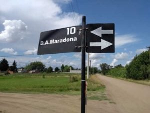 Es que la calle Dr. Añino a la altura del cruce con Tomás Davis tiene un cartel señalador que indica que se llama “D.A.Maradona” por obra y gracia de algún vecino que, aprovechando la distracción de las autoridades, se apoderó del nombre de su cuadra y se fue a vivir a la calle que él quería, obnubilado por su pasión futbolera y su devoción al mejor jugador de la historia del fútbol nacional.