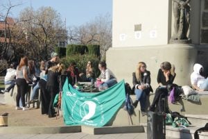 En Pehuajó, las manifestantes concentraron en la plaza principal donde realizaron una instalación con pañuelos verdes que portaban inscripciones tales como “Educación Sexual para descubrir, anticonceptivos para disfrutar y aborto legal para decidir”.