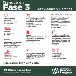 Trenque Lauquen sigue estando en Fase 3 “Alto Riesgo Epidemiológico”, de acuerdo a la Resolución de Provincia que adecuó las mismas al sistema definido por Nación.