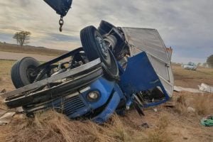 Un camión conducido por un trenquelauquense volcó y quedó a tirado en la banquina cuando protagonizó un accidente en la ruta provincial 1 de La Pampa, a la altura de la localidad de Trili.
