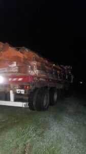 Al arribo de la dotación se observa vehículo de gran porte con acoplado playo, el mismo utilizado para el transporte de materiales para la construcción.