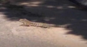 El animal, que tiene aspecto de ser un lagarto overo que suelen verse en las afueras de la ciudad, parece haber llegado por casualidad, aunque nadie sabe cómo se instaló.