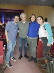 El encuentro tuvo lugar durante un impass en el ensayo y prueba de sonido que el artista realizó en el Cine del Club Barrio Alegre de Trenque Lauquen, en la tarde de este martes.