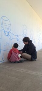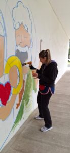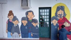Los murales ya están terminados después de tres días de trabajo en los que participaron activamente la comunidad educativa, dos días en el jardín y uno en la primaria. “La técnica es estos murales colectivos, en los que participa la comunidad”, afirmó Cristian. Su próximo destino será Lomas de Zamora, donde realizará unos murales con la ONG “Primeriar”, en memoria del Papa Francisco.