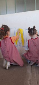 Desde el primer día, los niños de las salas de 4 y 5 años del turno tarde comenzaron a pintar, sumándose a la propuesta. La idea es que la obra sea un recuerdo para los estudiantes, un testimonio de que fueron parte de la creación de un espacio más bello para la entrada del jardín.