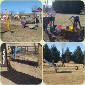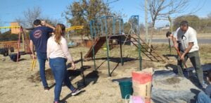 Las jornadas para concretar los 4 ejes del proyecto se iniciaron en noviembre del año pasado, y luego hubo una segunda muy importante en febrero, antes del inicio del actual ciclo lectivo. Las docentes, las familias y los vecinos se sumaron cada uno desde su lugar y con el aporte que podía a hacer a pintar juegos, arreglar otros, incorporar nuevas propuestas y encarar en conjunto el proyecto integral.