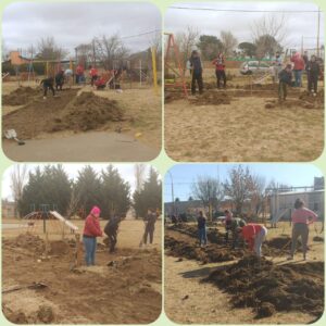 Aprovechando el receso invernal, en estas dos semanas, se organizaron jornadas de trabajo para concretar la obra previa para delinear el circuito por donde se va a ir descargando el hormigón fibrado para el camino. “Son 90 metros lineales de caminos, y se necesitan reglas y perfiles metálicos para poder armar las estructuras para volcar el hormigón, así que nuevamente salimos a pedir ayuda entre albañiles para que nos sumaran sus herramientas para completar con lo que se necesitaba”, rememoró emocionada por la ayuda recibida la directora del Jardín 909, quien también agradeció al área de Obras Públicas de la Municipalidad de Trenque Lauquen por los aportes que fue haciendo en las distintas etapas del proyecto.