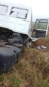En el siniestro participaron un camión de hacienda marca Mercedes Benz conducido por Germán Andrés Cid, quien se encuentra sin lesiones, y un camión Ford Cargo conducido por Leandro Raúl Giudice, de 48 años, y acompañado por su hijo menor, de 13 años de edad, ambos de Trenque Lauquen.