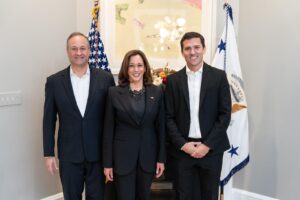 El joven trenquelauquense Juan Manuel Barrero mantuvo un encuentro con la vicepresidenta de Estados Unidos, Kamala Harris, en la Casa Blanca como parte de las actividades que buscan fomentar el intercambio de las autoridades gubernamentales con la comunidad de emprendedores latinos residentes en ese país.