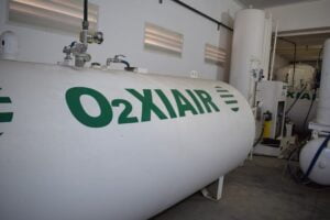 “Este método de adsorción lo hacemos en una planta y consiste básicamente en tomar el aire a través de compresores, lo pasamos por un sistema de secado y filtrado para purificar el aire y se inyecta en unos módulos que contienen un material que se llama zeolita, que retiene el oxígeno y lo transporta hacia todo el Hospital: se distribuye en Quirófano, en las Salas, en la Unidad de Terapia Intensiva y Unidad Coronaria”, precisó Valente.