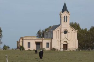 En una extensa nota que publica el diario La Nación se narra la sorprenderte historia de una capilla construida en medio de 3 mil hectáreas, dentro del partido de Carlos Tejedor, con el que linda el de Trenque lauquen hacia el noreste. En su interior se encuentra un ataúd de cristal con la imagen de Santa Inés, quien da nombre al solitario templo.