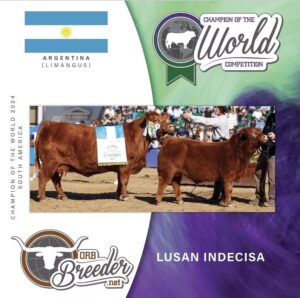 Una ejemplar bautizada “Lusan Indecisa” de la raza Limangus, perteneciente a la cabaña “Los Pirulos” de Tres Lomas, propiedad de Leonardo Hernández, fue consagrada como “Miss Mundo” en la categoría ORB Breeder, según consigna en la edición de hoy el diario “La Nación”, qué reproduce los resultados del “Champion of the World”, una competencia que reúne a los mejores exponentes de las razas bovinas del mundo