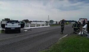 Los datos señalan que “el accidente se dio en la zona del puente que pasa sobre el canal. La camioneta más perjudicada, una Toyota Hilux, tras la colisión se habría caído al canal y la habría arrastrado la corriente. En el vehículo se trasladaban tres ocupantes, uno de ellos logró salir y las otras dos están desaparecidas”.