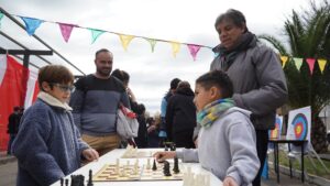 Más de 30 stands de instituciones, áreas municipales y empresas locales se distribuyeron sobre las calles San Martín, Oro, Uruguay y Villegas, con juegos, desafíos y propuestas interactivas. Entre los espacios más concurridos estuvo la Pista de Tránsito coordinada por la Dirección de Protección Ciudadana, que atrajo a decenas de niños y niñas interesados en aprender jugando.