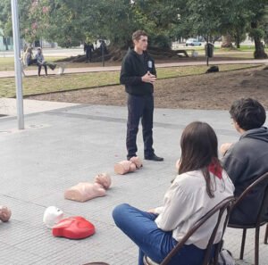 Bruzzón, que es bombero voluntario del Cuartel Central y técnico en Emergencias Médicas, se mostró entusiasmado con la respuesta de la comunidad que se suma a aprender distintas técnicas de uso accesible para circunstancias domésticas donde se pueden salvar vidas cuando todo ocurre en apenas unos segundos.