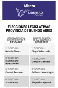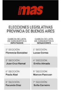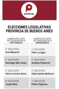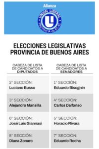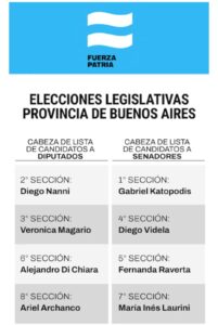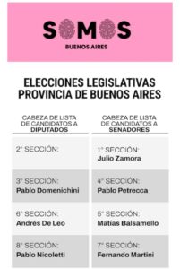 A continuación, el listado con los nombres que encabezarán las listas en cada una de las 8 secciones electorales que tiene la provincia de Buenos Aires.