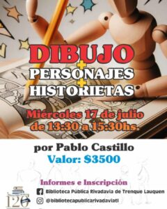 – El miércoles 17 de 13.30hs a 15.30hs. Taller de dibujo e historietas a cargo de Pablo Castillo.