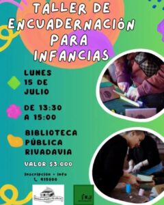 – El lunes 15 de 13:30hs a 15:00 hs. Taller de encuadernación para infancias. Dos técnicas de costura en tapa blanda, no se requiere conocimiento previo. Todas las herramientas y materiales están incluidos.