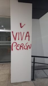 Un nuevo acto de vandalismo se dio en la madrugada de hoy cuando dos adolescentes pintaron grafitis en las paredes del Centro Cívico de Trenque Lauquen.